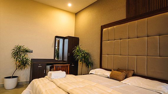 Experience unmatched comfort and breathtaking views in our Executive Room with a valley view at Hail Vagamon. Elegantly designed for relaxation and luxury, the room features modern amenities, a plush king-sized bed, and large windows offering stunning vistas of the serene valleys. Wake up to the beauty of misty hills and unwind in a tranquil ambiance perfect for couples or solo travelers. Whether for a romantic escape or a peaceful retreat, this room ensures a rejuvenating stay amidst natures finest.